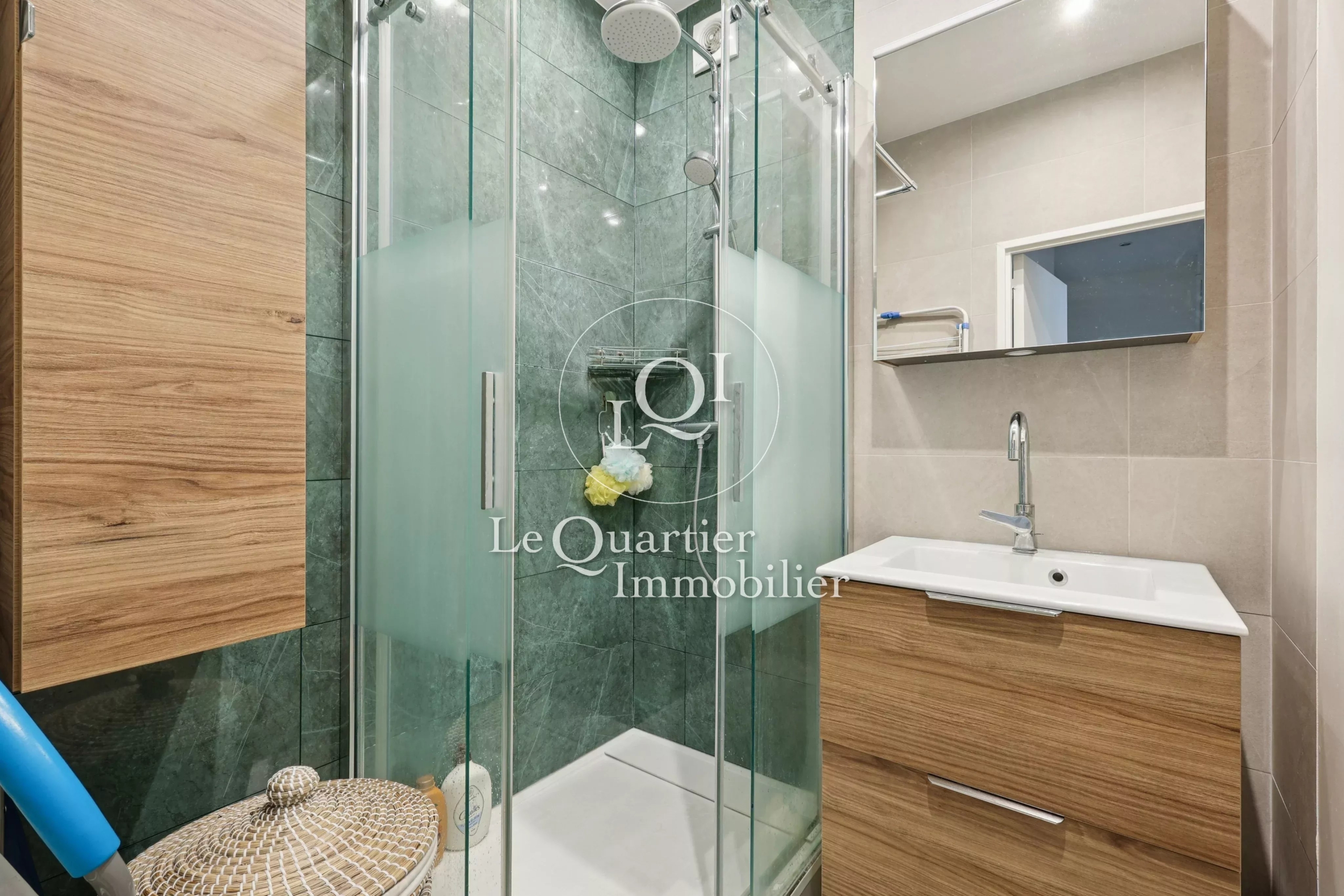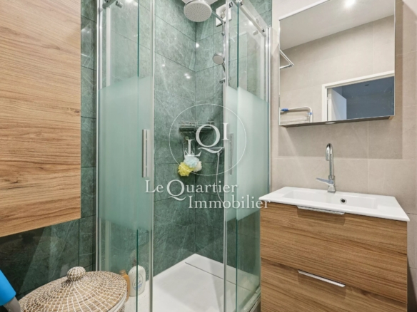 Une salle de douche moderne, des toilettes séparés avec vasque ainsi que de nombreux rangements sur mesure complètent ce bien fonctionnel et raffiné.