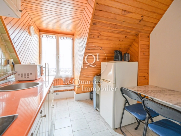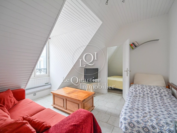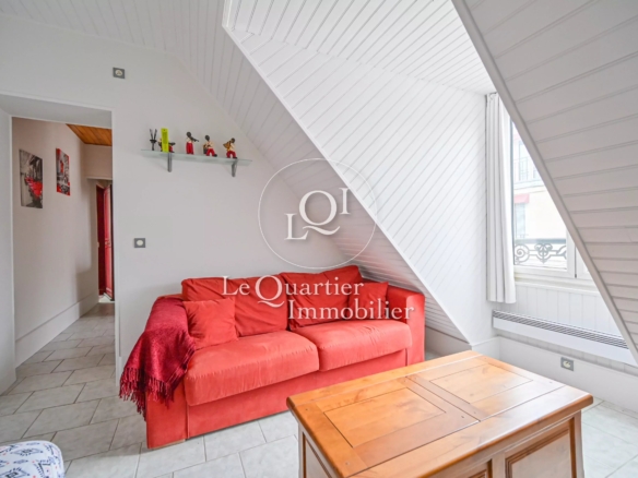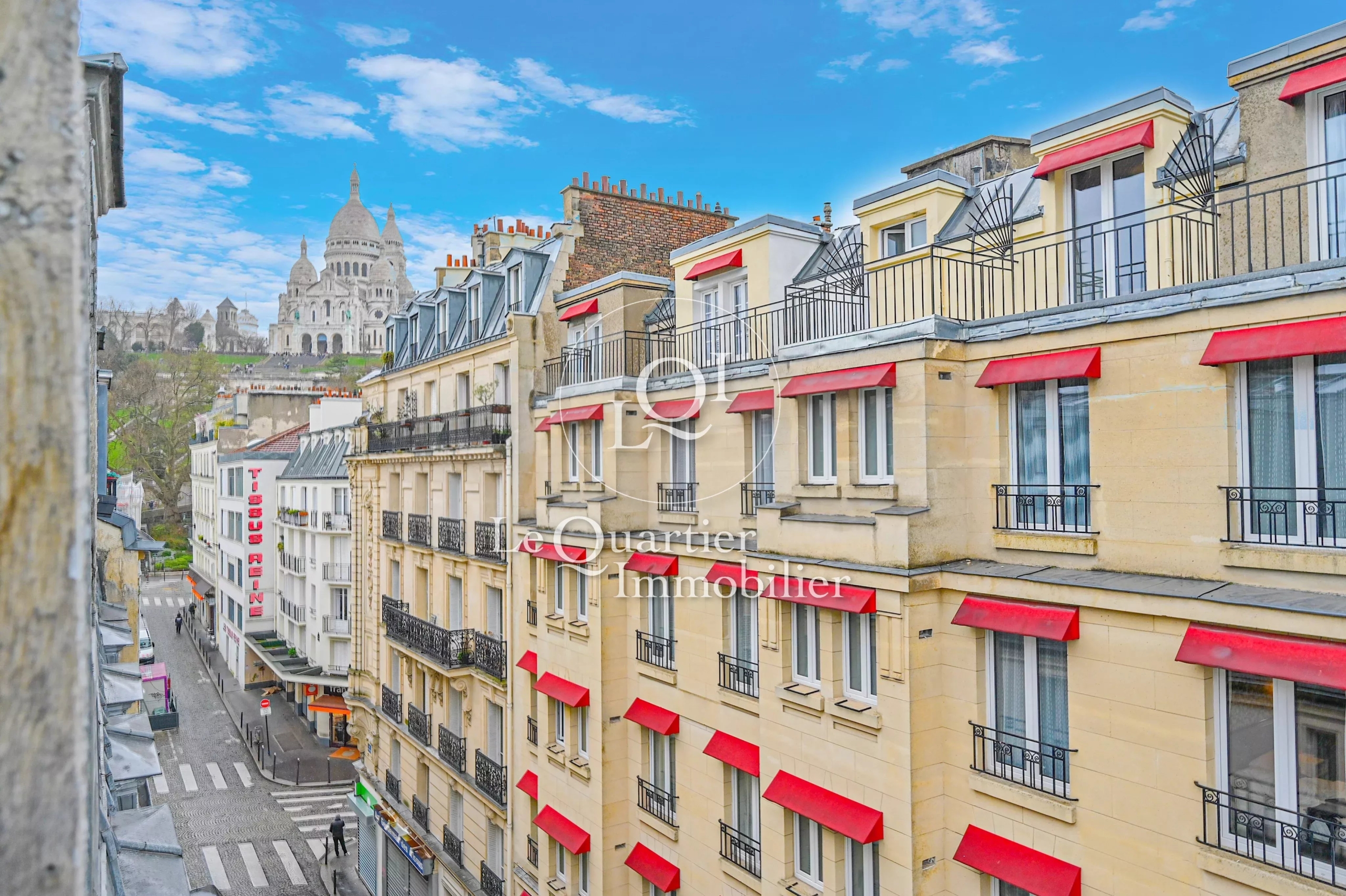 Dans le 18ème arrondissement de Paris, proche métro Anvers et Abbesses à deux pas du Sacré Coeur, niché au 5ème étage d'un immeuble ancien, Le Quartier Immobilier vous propose à la vente cet appartement de 2 pièces de 32m2 au sol, unique de par sa situation et sa disposition