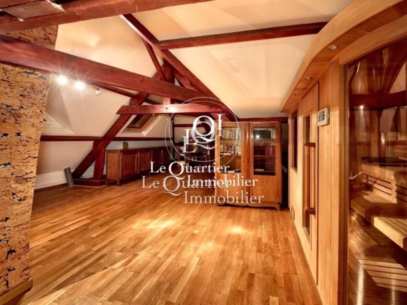 L'étage propose un palier desservant plusieurs chambres, une grande pièce polyvalente avec bar, une salle d'eau moderne avec SPA ainsi qu'un grenier offrant un espace de stockage supplémentaire. L'agencement permet d'accueillir famille et invités dans un cadre agréable et fonctionnel.