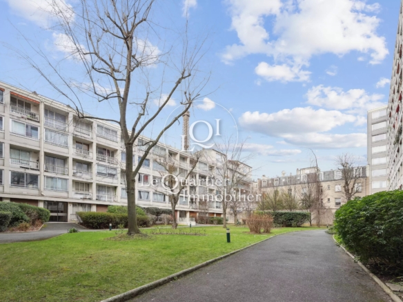 La copropriété sécurisée et gardiennée offre une sérénité rare en plein Paris. En toile de fond, la vue sur la Tour Eiffel rappelle chaque jour le privilège de cette adresse unique.