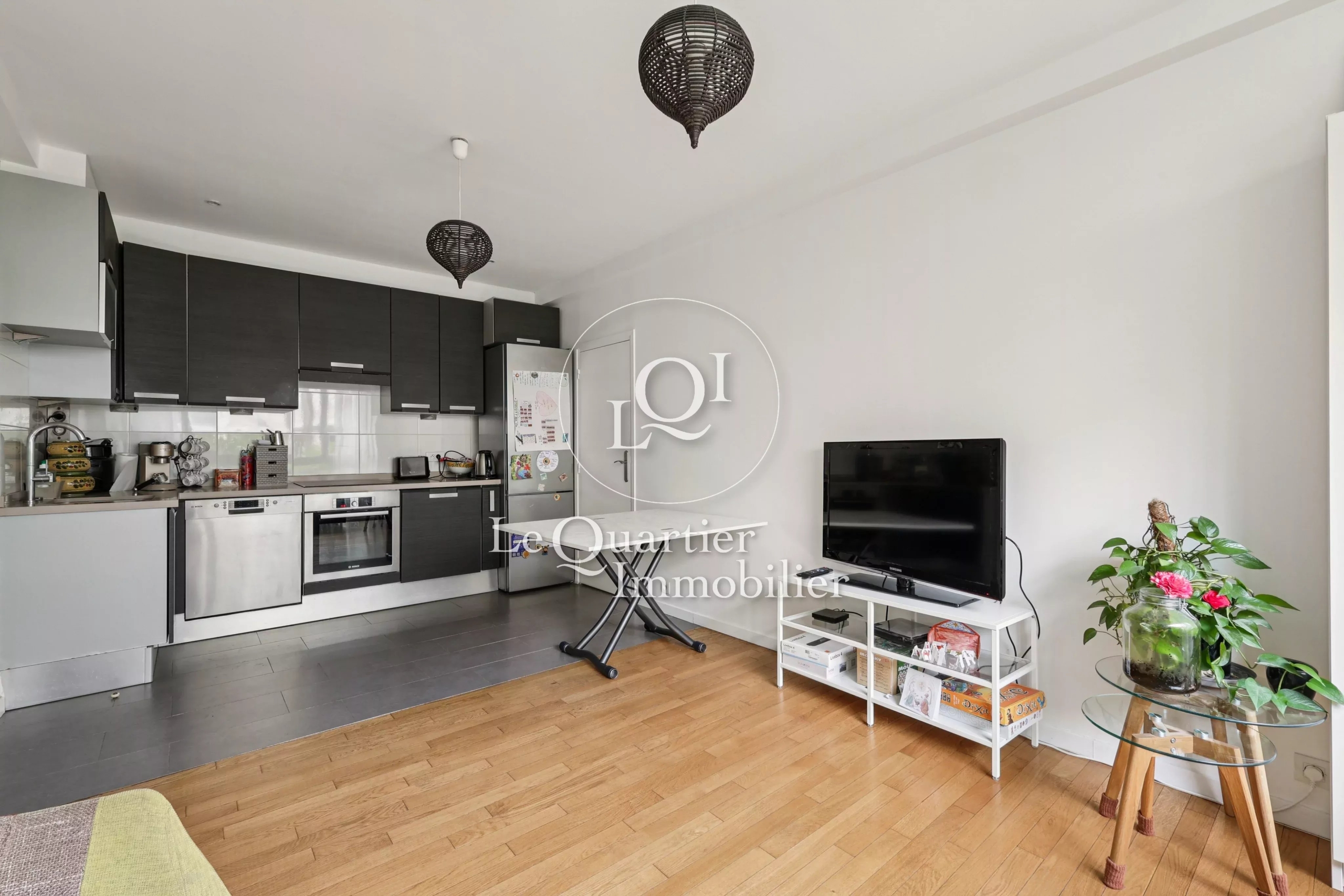 Le plan parfaitement optimisé, sans perte d’espace, propose une cuisine ouverte sur le séjour, créant un espace de vie convivial et harmonieux.