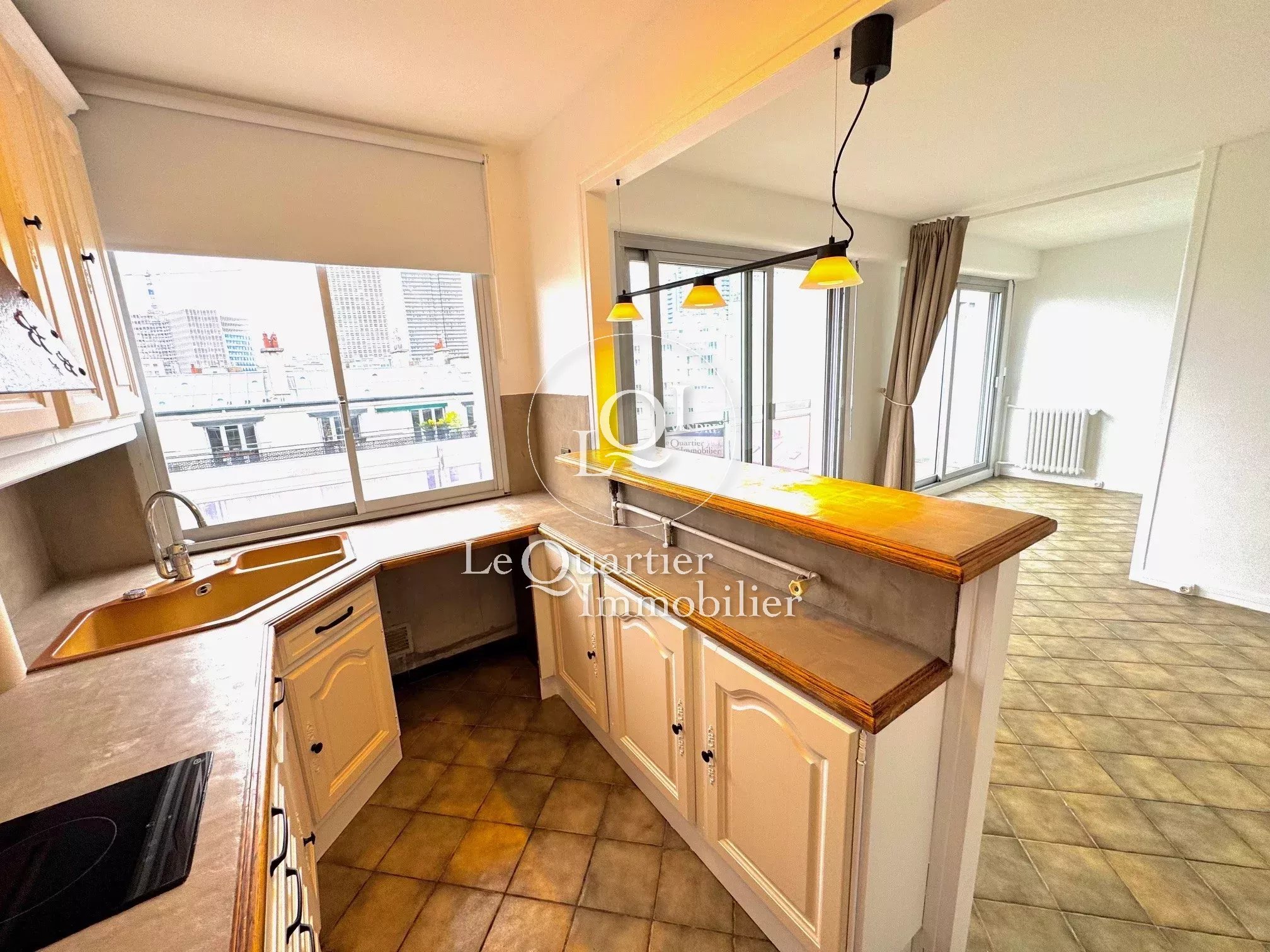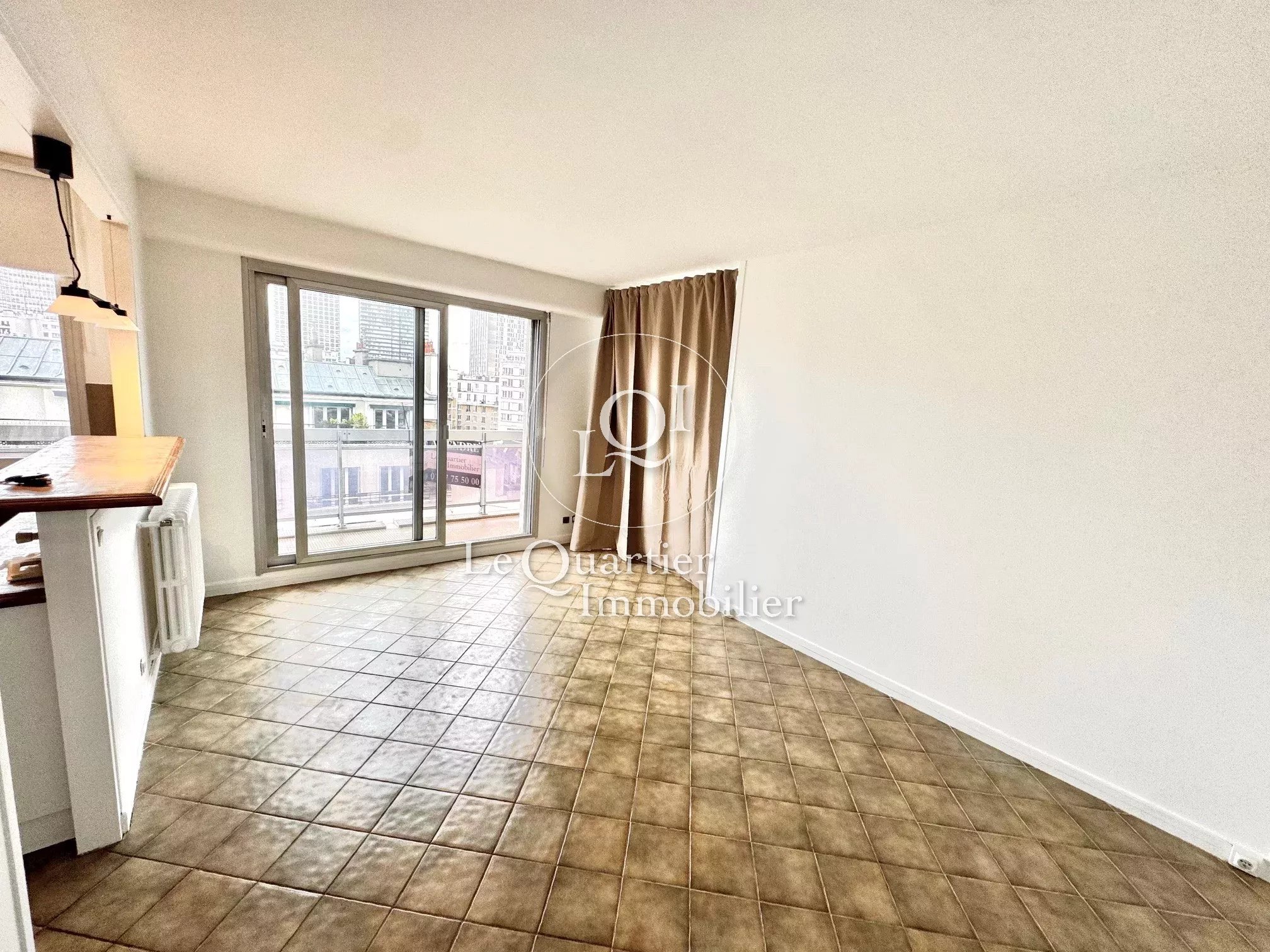 Dès le seuil franchi, vous serez immédiatement charmé par un séjour lumineux avec une belle vue dégagée sur la Tour Eiffel et par sa cuisine américaine qui n'attend que vous pour y concocter vos bons petits plats !