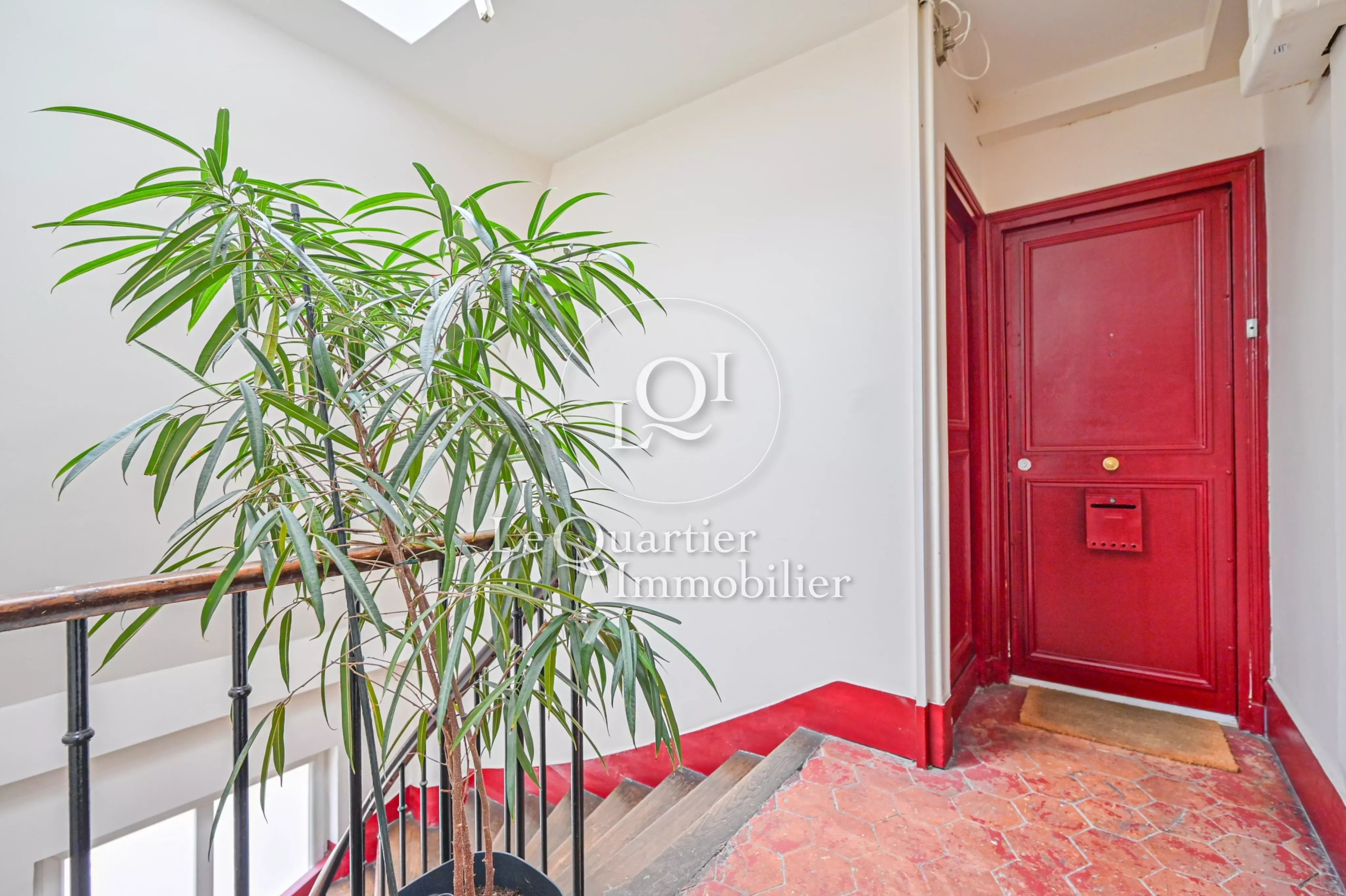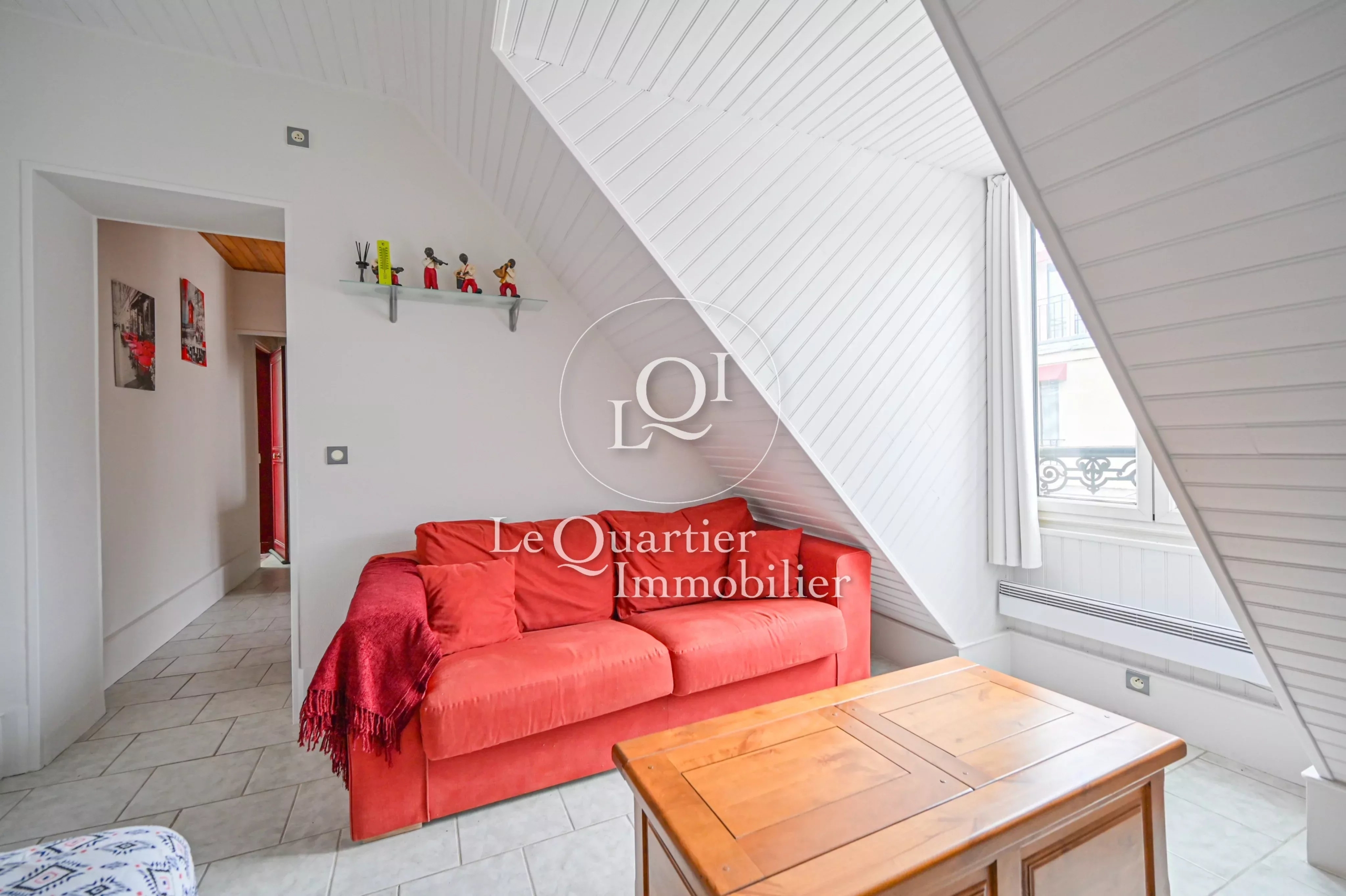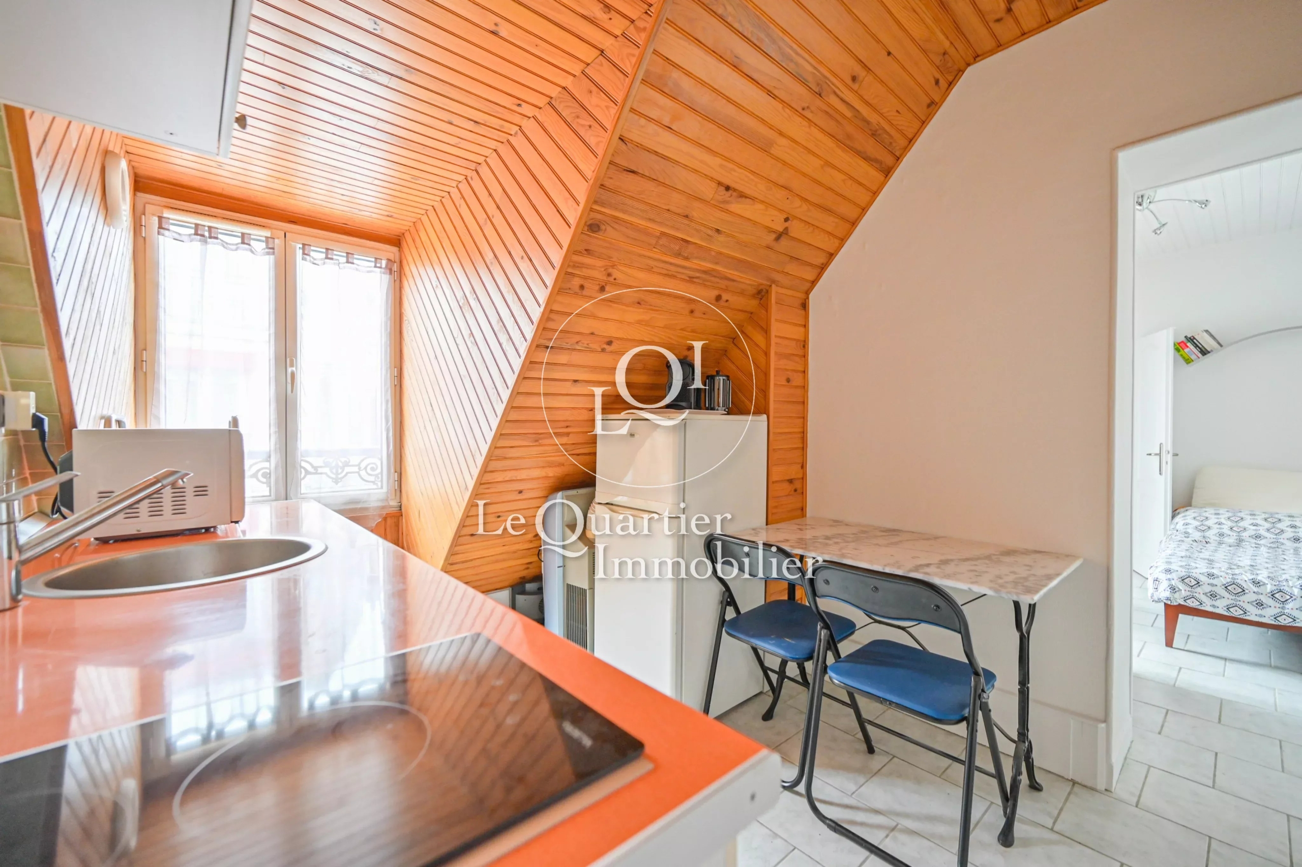 Dans le 18ème arrondissement de Paris, proche métro Anvers et Abbesses à deux pas du Sacré Coeur, niché au 5ème étage d'un immeuble ancien, Le Quartier Immobilier vous propose à la vente cet appartement de 2 pièces de 32m2 au sol, unique de par sa situation et sa disposition