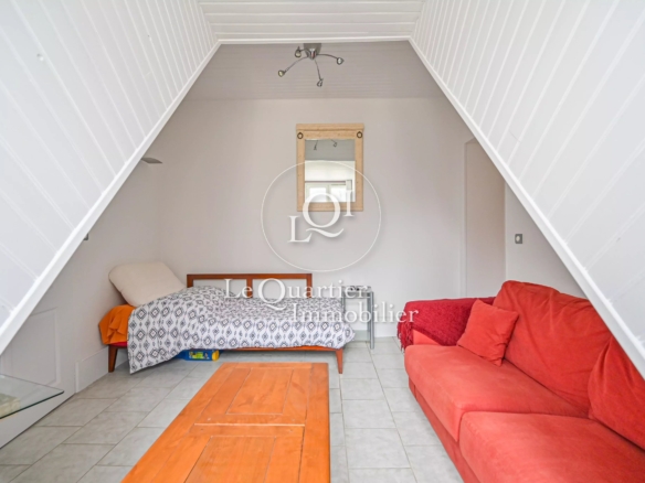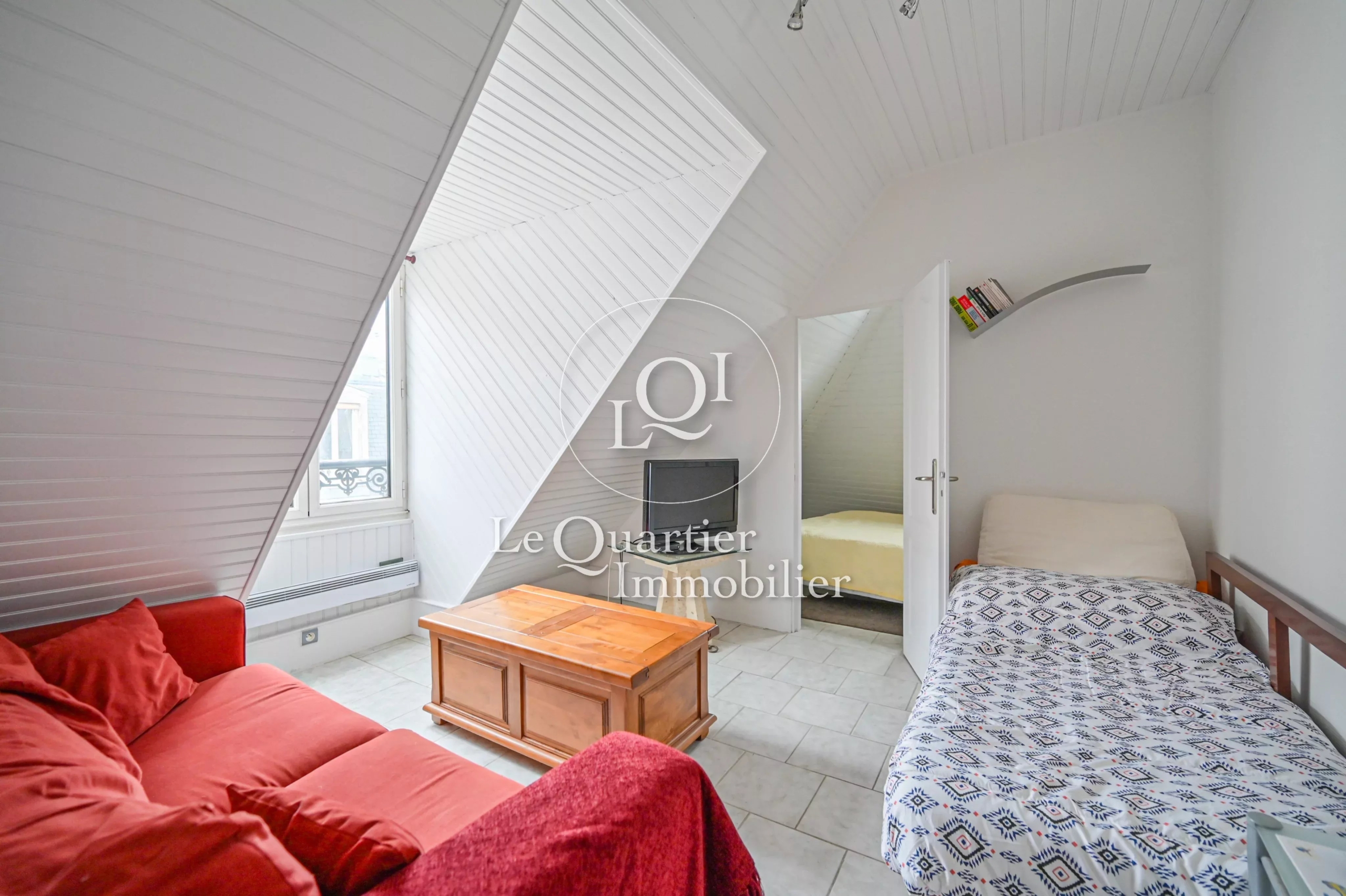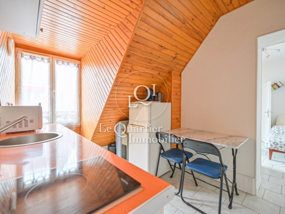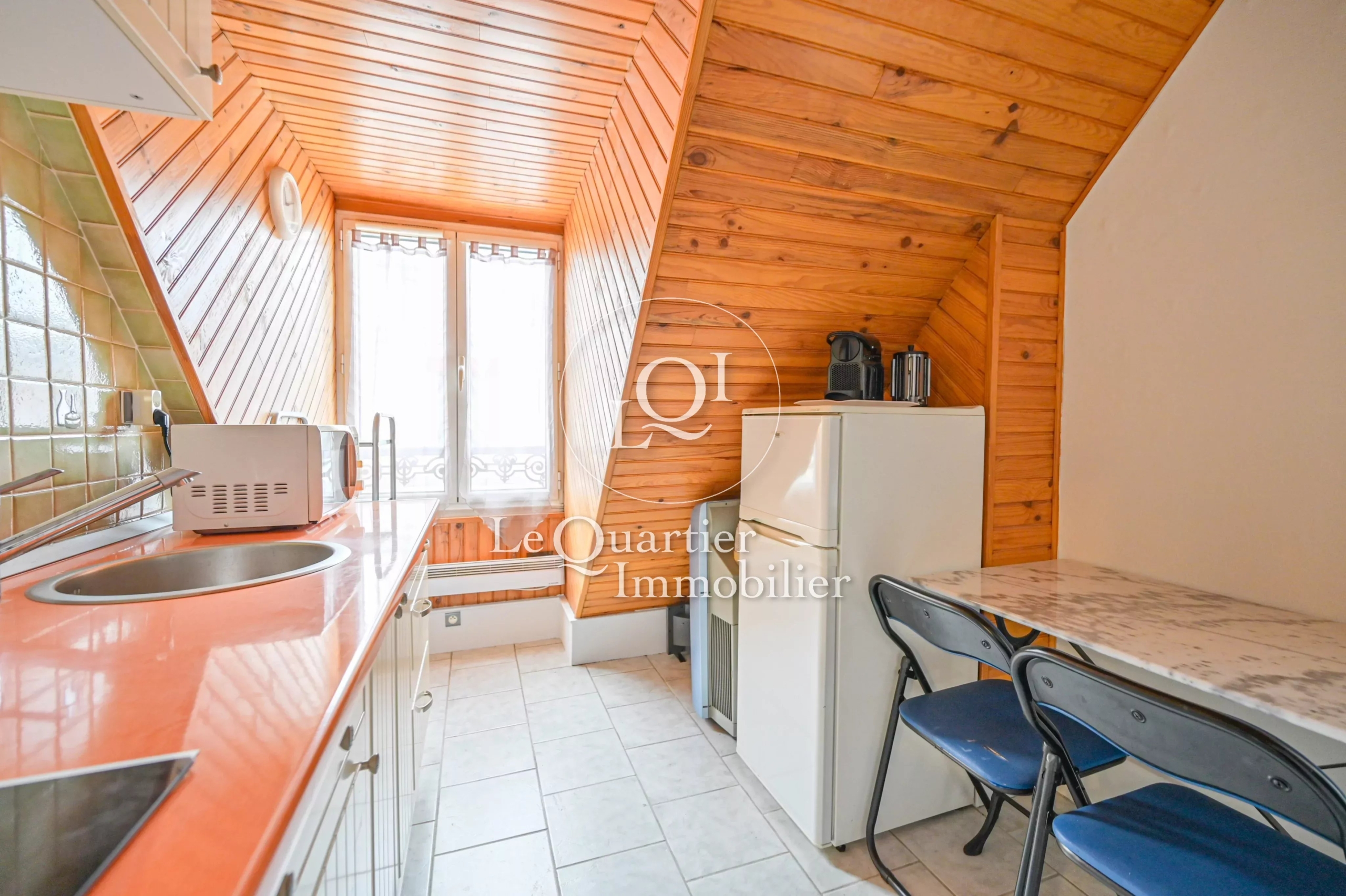 Dans le 18ème arrondissement de Paris, proche métro Anvers et Abbesses à deux pas du Sacré Coeur, niché au 5ème étage d'un immeuble ancien, Le Quartier Immobilier vous propose à la vente cet appartement de 2 pièces de 32m2 au sol, unique de par sa situation et sa disposition