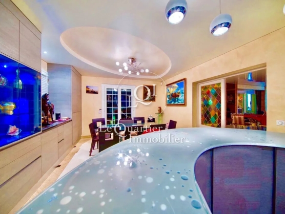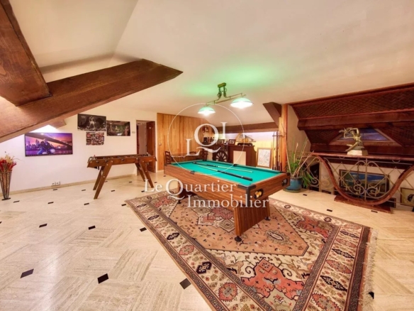 Le jardin paysager. parfaitement entretenu. constitue un véritable havre de paix. Il accueille une grande piscine de 6x12 chauffée. nage contre courant etc. un kiosque. un chalet. ainsi qu'une aire de basket. Une mare et plusieurs terrasses complètent cet ensemble exceptionnel. invitant à la détente et à la convivialité.