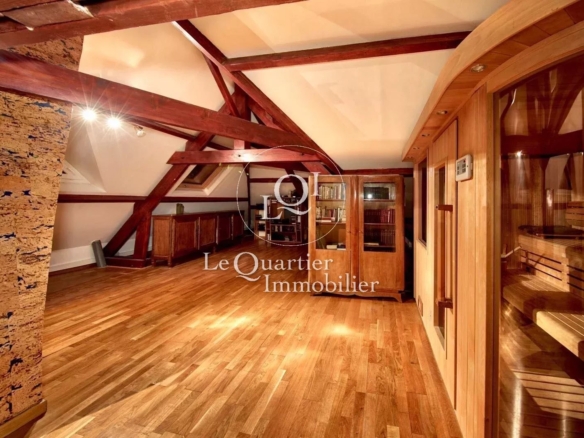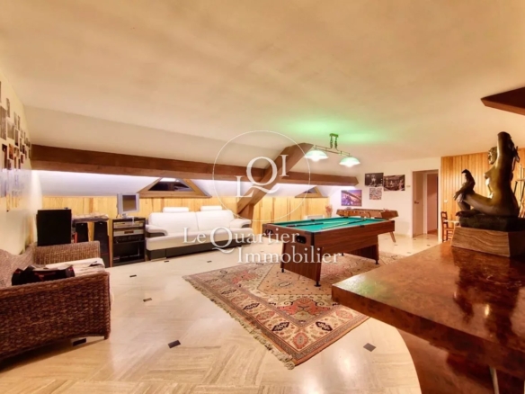 L'étage propose un palier desservant plusieurs chambres. une grande pièce polyvalente avec bar. une salle d'eau moderne avec SPA ainsi qu'un grenier offrant un espace de stockage supplémentaire. L'agencement permet d'accueillir famille et invités dans un cadre agréable et fonctionnel.